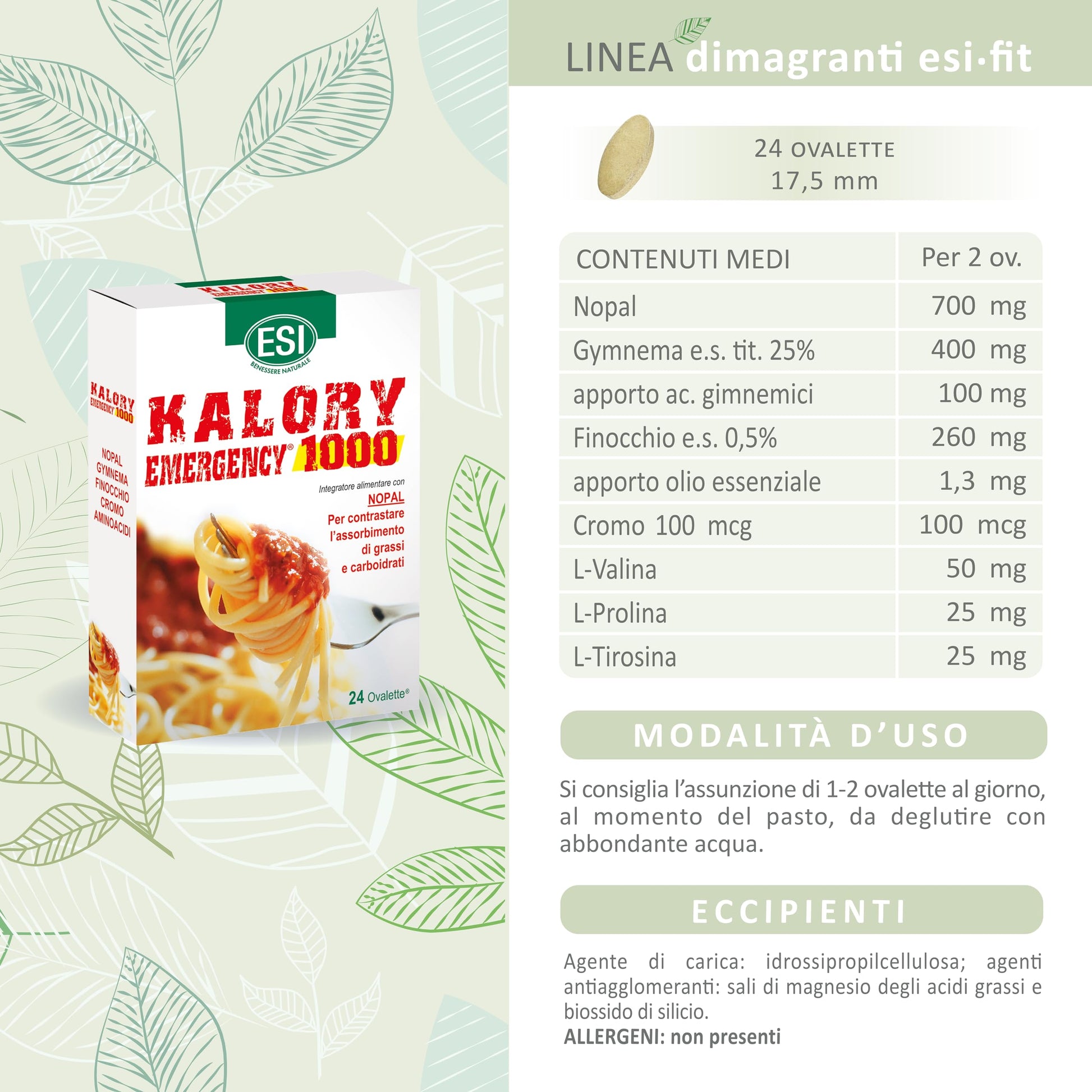 - Kalory Emergency 1000: integratore alimentare utile per diminuire le calorie assorbite con il consumo dei pasti