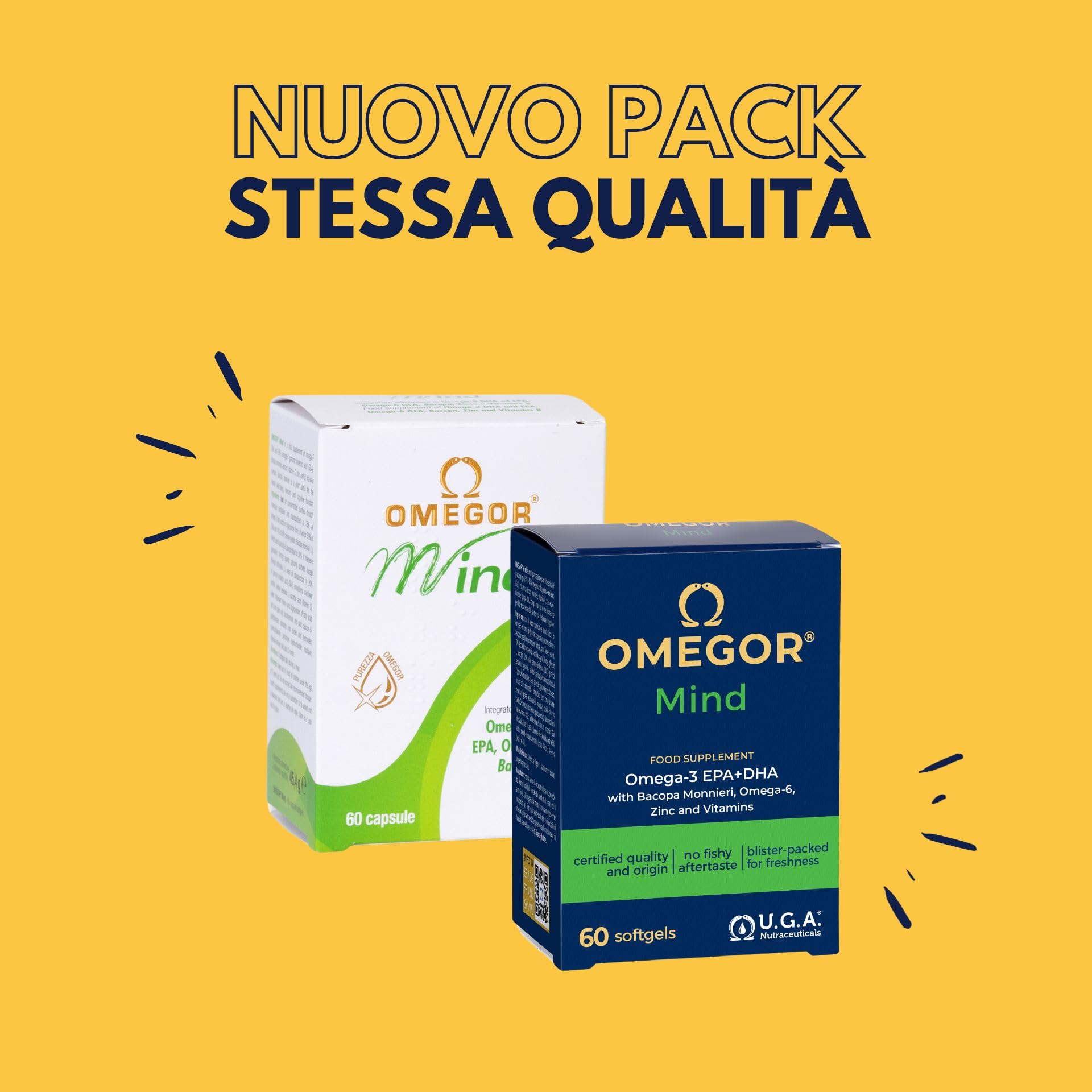 OMEGOR Mind | Integratore per la memoria e le funzioni congnitive | Con Omega 3 DHA ed estratto di Bacopa Monnieri, olio di borragine, zinco e vitamine B | Distillazione molecolare
