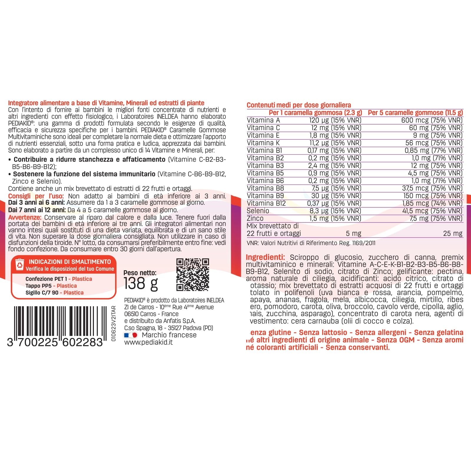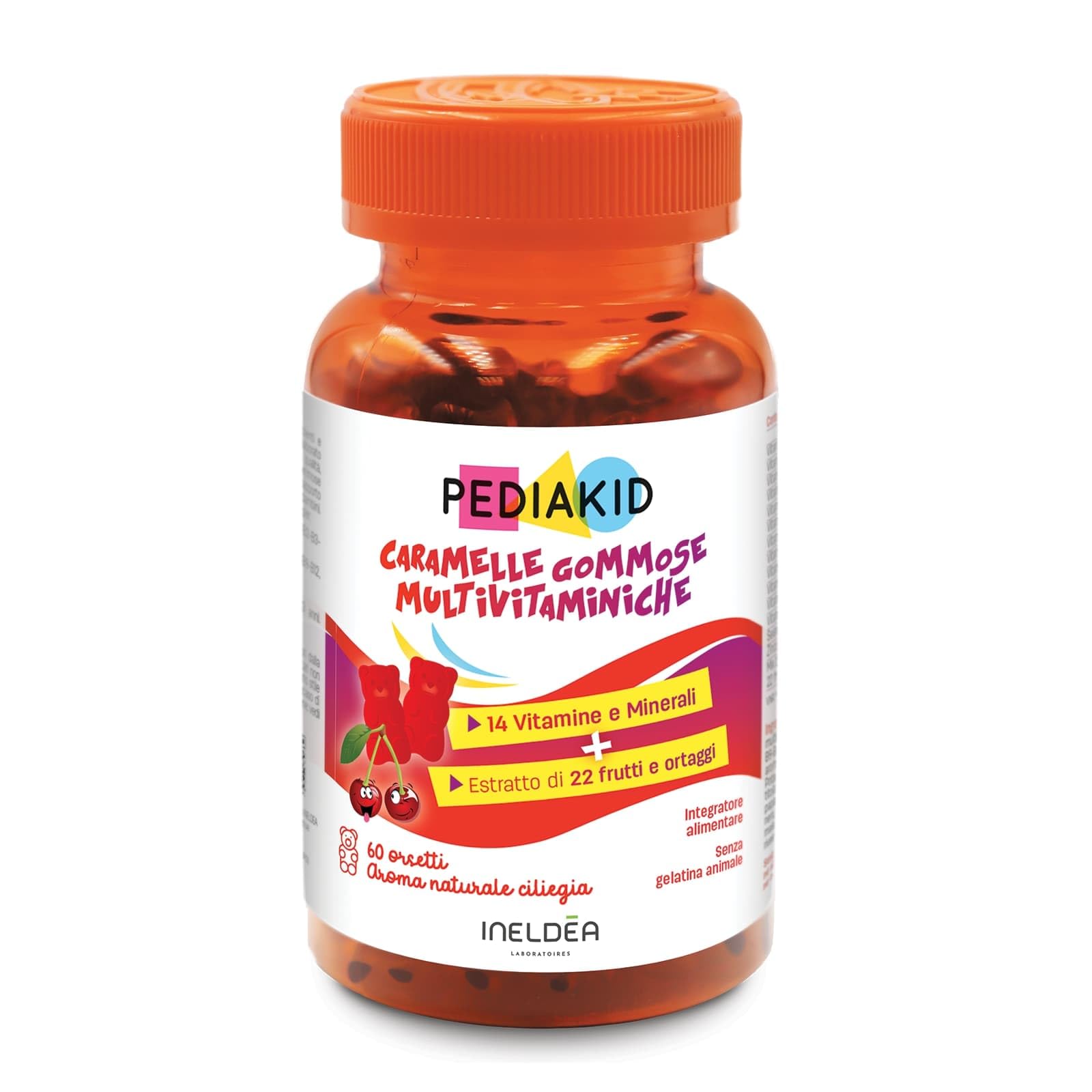 - OTTMIZZARE L'APPORTO DI NUTRIENTI ESSENZIALI : Al delizioso aroma naturale di ciliegia, le Caramelle gommose Multivitaminiche PEDIAKID contribuiscono a ridurre l’affaticamento e sostengono il funzionamento del sistema immunitario.