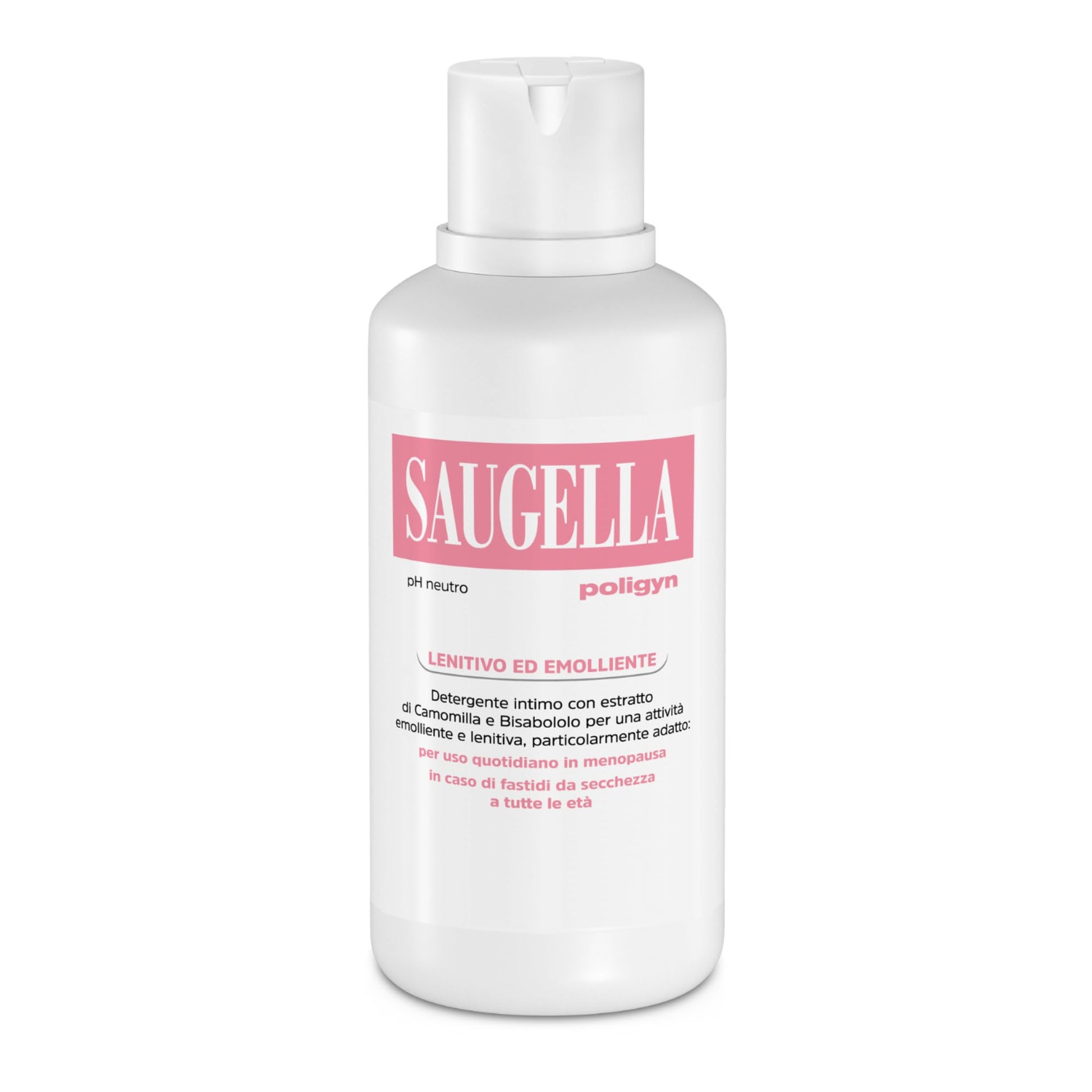 - SAUGELLA POLIGYN: detergente intimo che offre un sollievo mirato contro prurito, secchezza e altri disagi legati alla menopausa e a cambiamenti post-menopausali