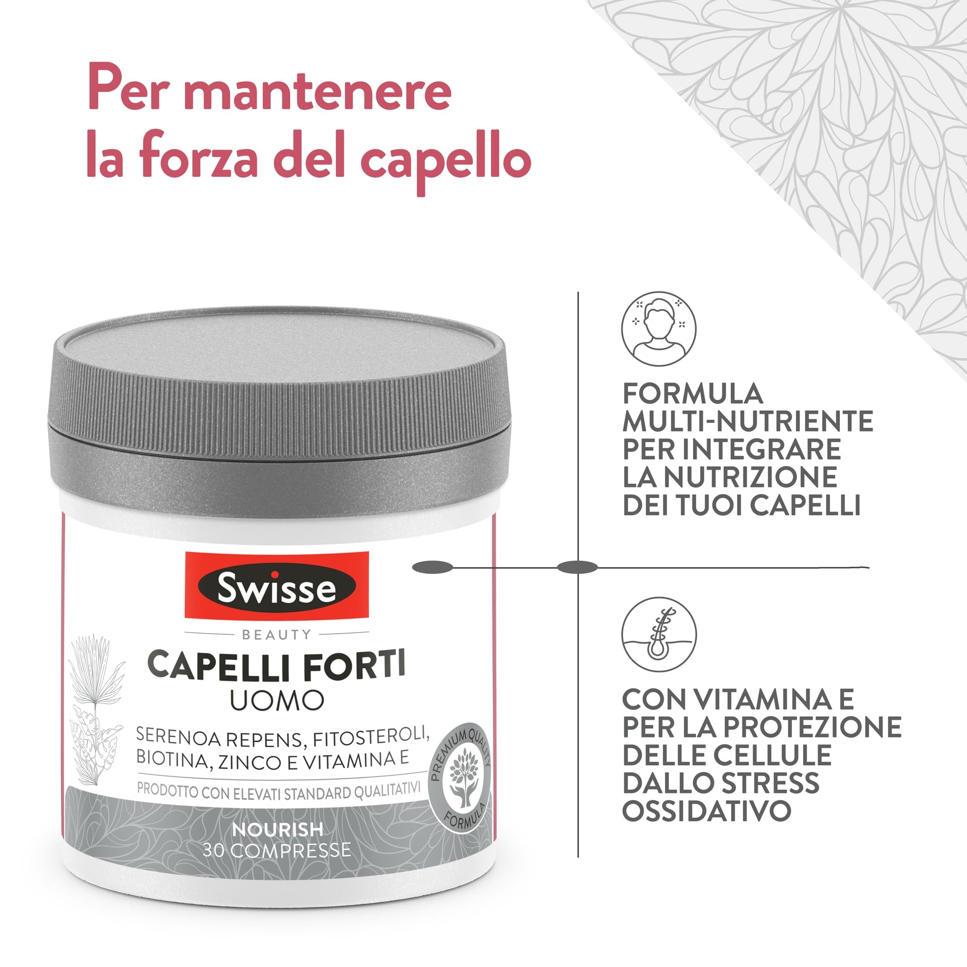 - SWISSE CAPELLI FORTI UOMO: Un integratore alimentare con una formula multi-nutriente specificatamente formulato per integrare la tua nutrizione.